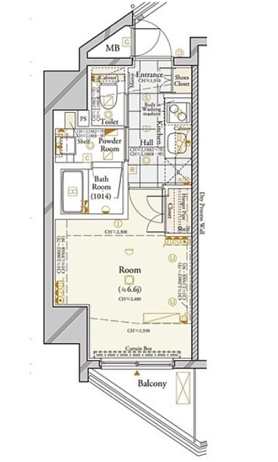 角部屋の1KはIH2口のシステムキッチンや浴室乾燥機、独立洗面台、温水洗浄便座、ドラム式洗濯機などの設備が充実。宅配ボックスや敷地内ゴミ置場、モニター付オートロック、駐輪場等の共用部も充実の分譲賃貸マンション