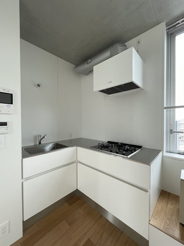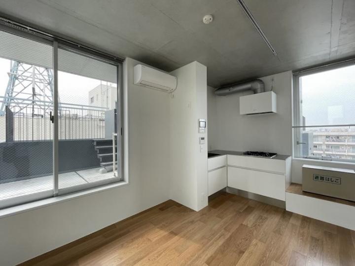 玄関土間内にバイクや自転車を駐輪できるデザイナーズマンション。最上階、角部屋、メゾネットタイプの室内は3口ガスのL字型システムキッチンや追炊き、浴室乾燥機等の設備に優れ、インターネットが無料で利用可能