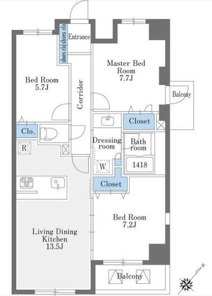 | 間取り詳細 | LDK:13.5畳 洋室:7.7畳、7.2畳、5.7畳 |