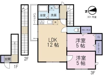 | 間取り詳細 | LDK:12畳 洋室:5畳、5畳 |