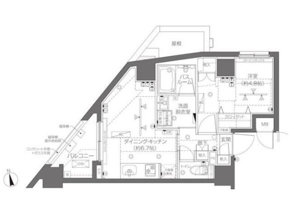 | 間取り詳細 | DK:6.7畳 洋室:4.8畳 |
