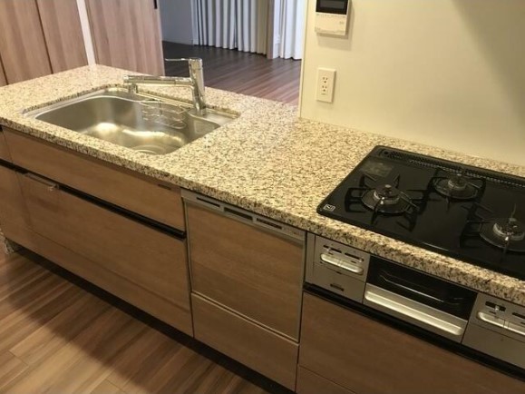 南西向きの3LDKはインターネット利用料が無料。食洗器やディスポーザー、浄水器、グリル付きの3口カウンターキッチンや追い炊き、ミストサウナ等の設備に優れ、ウォークインクローゼットが2か所あり収納も豊富
