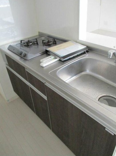 角部屋、二面採光の1LDKはインターネット利用料が無料。2口ガスカウンターキッチンや三面鏡付洗髪洗面化粧台、追い炊き、温水洗浄便座、エアコン2基等の設備に優れ、宅配ボックスやゴミ置場等の共用部も充実