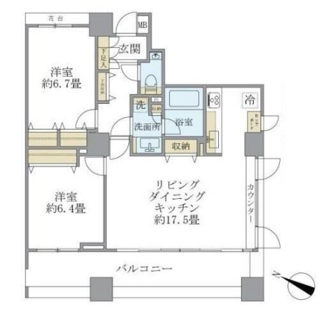 | 間取り詳細 | LDK:17.5畳 洋室:6.7畳、6.4畳 |