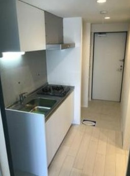 【仲介手数料無料】スポットライト照明が一部コンクリート打ちっぱなしの室内を照らすお洒落なデザイナーズマンション。2口ガスのシステムキッチンや浴室乾燥機、温水洗浄便座等の設備も充実した二面採光の角部屋
