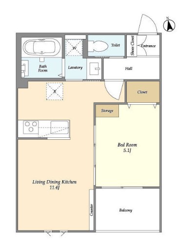 | 間取り詳細 | LDK:11.4畳 洋室:5.1畳 |
