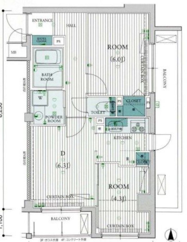 | 間取り詳細 | D:6.3畳 洋室:6畳、4.3畳 |