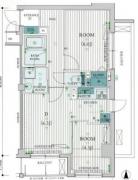 南向き、角部屋、二面採光の風通しに優れた2DKは3口ガスのシステムキッチンや独立洗面台、浴室乾燥機、シャワートイレ等の設備が充実。駐車場や無料で利用可能な駐輪場、宅配ボックス等の共用設備が整う分譲賃貸