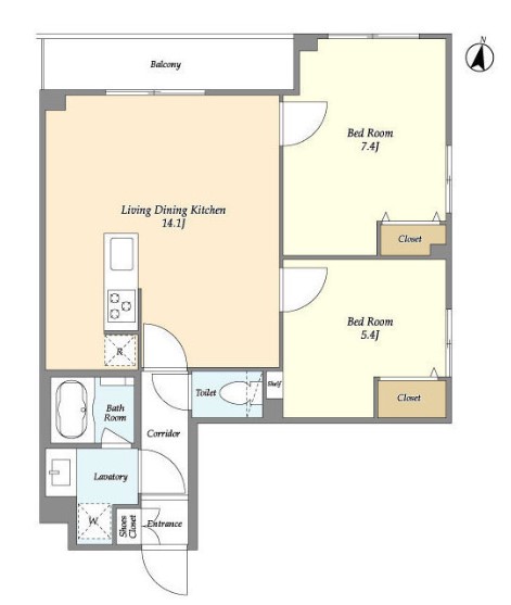 | 間取り詳細 | LDK:14.1畳 洋室:7.4畳、5.4畳 |
