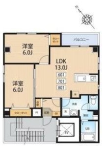 | 間取り詳細 | LDK:13畳 洋室:6畳、6畳 |