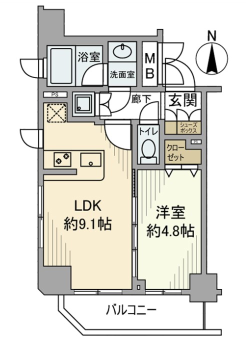 | 間取り詳細 | LDK:9.1畳 洋室:4.8畳 |