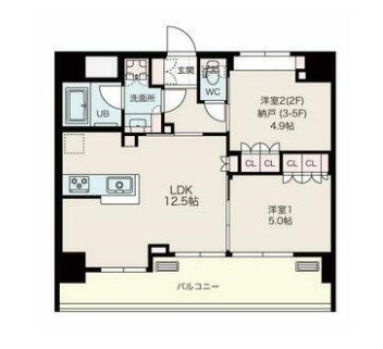 | 間取り詳細 | LDK:12.5畳 洋室:5畳、4.9畳 |