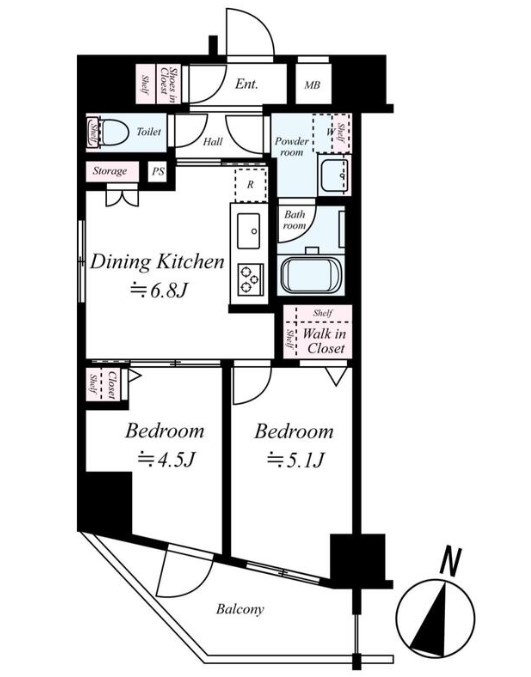 | 間取り詳細 | DK:6.8畳 洋室:5.1畳、4.5畳 |