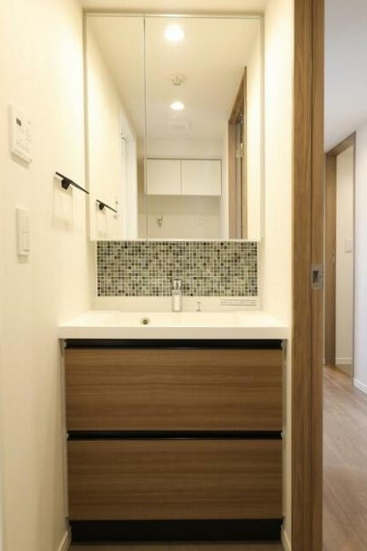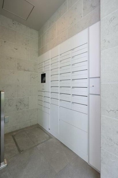 光インターネットが無料で楽しめる二面採光の角部屋はグリル付きの2口ガスのシステムキッチンや浴室乾燥機、追い炊き、独立洗面化粧台、温水洗浄便座等の設備が整い、宅配ボックスやゴミ置場等の共用設備も充実
