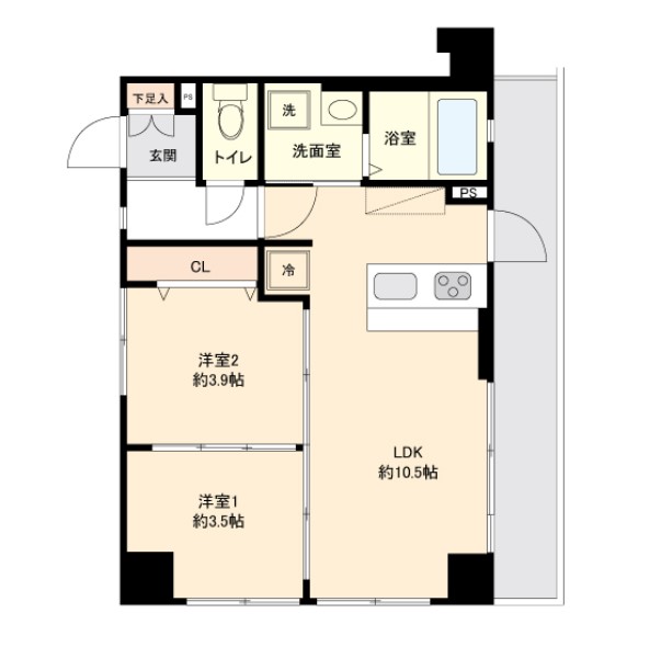 | 間取り詳細 | LDK:10.5畳 洋室:3.9畳、3.5畳 |