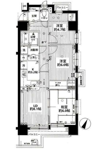 | 間取り詳細 | LDK:11.3畳 洋室:6畳、4.7畳 和室:6畳 |