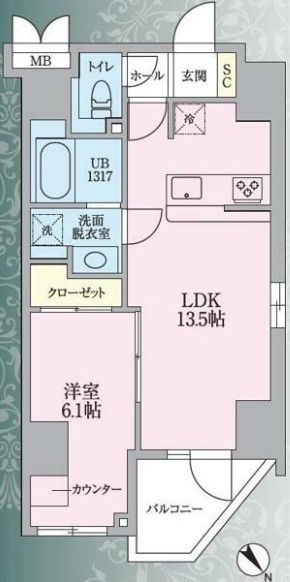 | 間取り詳細 | LDK:13.5畳 洋室:6.1畳 |