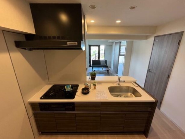 角部屋、二面採光の1LDKはNURO光が無料で利用可能。グリル付きの3口ガスカウンターキッチンや追い炊き、浴室乾燥機、独立洗面台、温水洗浄便座等の設備に優れ、宅配ボックスや駐輪場等の共用設備も充実。