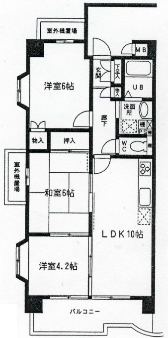 | 間取り詳細 | LDK:10畳 洋室:6畳、4.2畳 和室:6畳 |