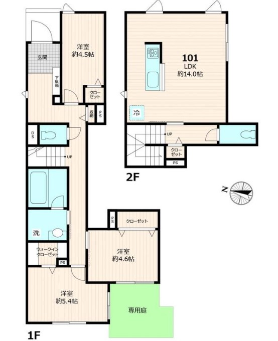 | 間取り詳細 | LDK:14畳 洋室:5.4畳、4.6畳、4.5畳 |