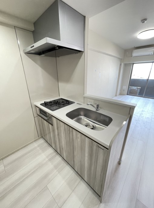 角部屋、二面採光の1LDKはインターネット利用料が無料。2口ガスコンロのグリル付きカウンターキッチンや浴室乾燥機、独立洗面化粧台、温水洗浄便座等の設備に優れ、ウォークインクローゼットがあり収納も豊富