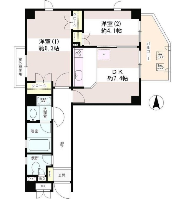 | 間取り詳細 | DK:7.4畳 洋室:6.3畳、4.1畳 |