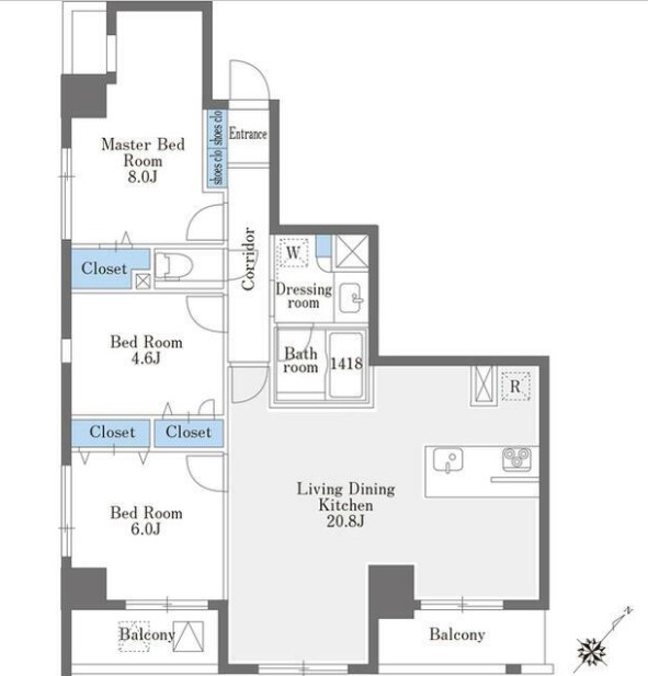 | 間取り詳細 | LDK:20.8畳 洋室:8畳、6畳、4.6畳 |