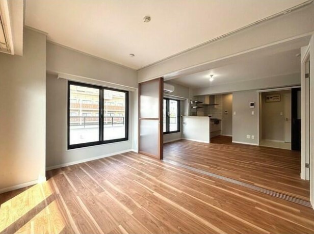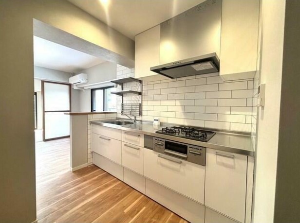 2025年3月リノベーション済み、ルーフバルコニー含む二面バルコニーが広がる角部屋はグリル付きの3口システムキッチンや追い炊き、浴室乾燥機、独立洗面化粧台、ウォークインクローゼット等の設備が充実。