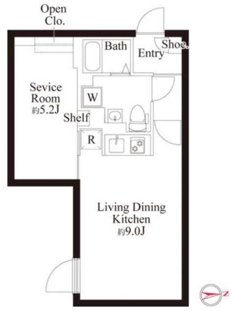 | 間取り詳細 | LDK:9畳 洋室:5.2畳 |