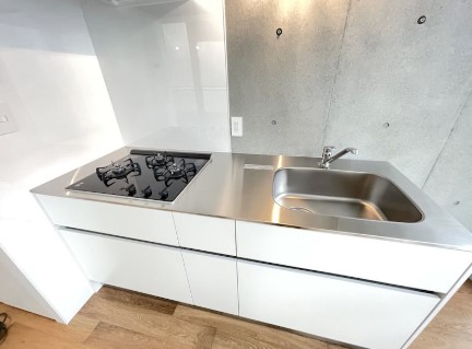 玄関土間内に自転車を駐輪できるデザイナーズマンション。複数面採光の角部屋は3口ガスのシステムキッチンや追炊き、浴室乾燥機、独立洗面台、温水洗浄便座等の設備に優れ、インターネットが無料で利用可能です。