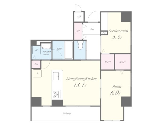 | 間取り詳細 | LDK:13.1畳 洋室:6畳、5.3畳 |