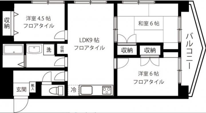 | 間取り詳細 | LDK:9畳 洋室:6畳、4.5畳 和室:6畳 |