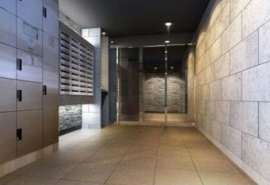 12階部分の1Kは2口ガスコンロのシステムキッチンや独立洗面台、浴室乾燥機、温水洗浄暖房便座等の設備が整い、宅配ボックスや24時間利用可能なゴミ置場、駐輪場等の共用設備も充実の分譲マンションです