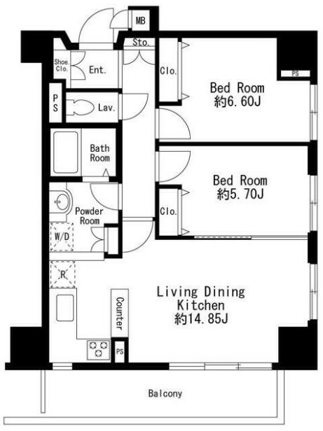 | 間取り詳細 | LDK:14.85畳 洋室:6.6畳、5.7畳 |