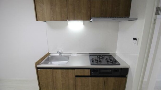 最上階、角部屋の1LDKはインターネット利用料が無料。グリル付きの3口ガスシステムキッチンや追い炊き、浴室乾燥機、シャンプードレッサー、温水洗浄便座、モニター付オートロック、エアコン等の設備が充実