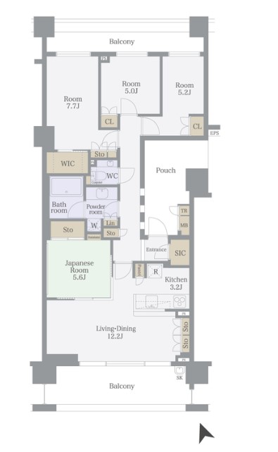 | 間取り詳細 | LDK:15.4畳 洋室:7.7畳、5.2畳、5畳 和室:5.6畳 |