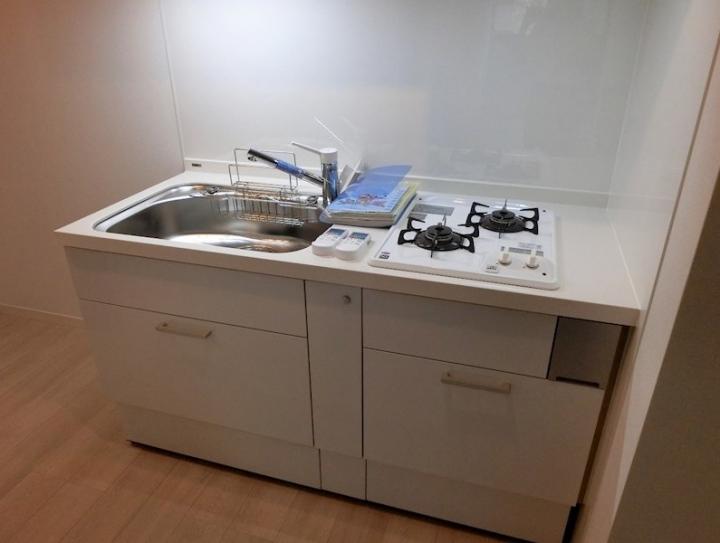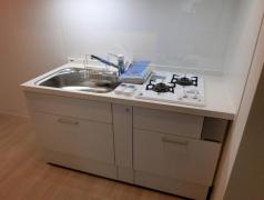 二面採光の1LDKはインターネット利用料が無料。2口ガスのシステムキッチンや追い炊き、浴室乾燥機、温水洗浄便座、エアコン2基等の設備に優れ、宅配ボックスやセコム、敷地内ゴミ置場等の共用設備も充実。