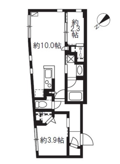 | 間取り詳細 | LDK:10畳 洋室:3.9畳、2.3畳 |