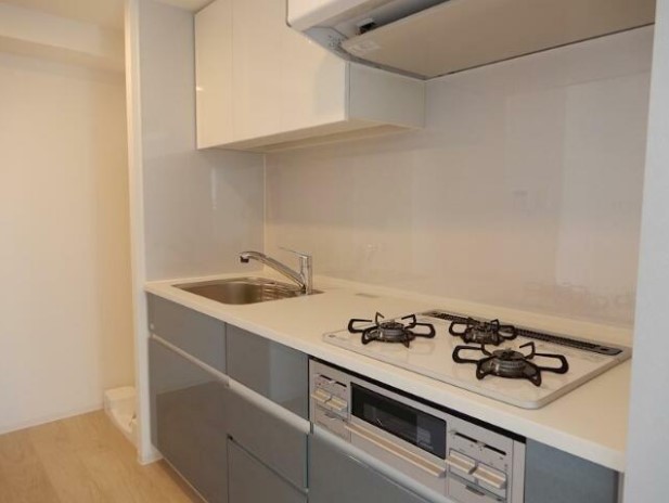 ルーフバルコニーが広がる最上階、二面採光の角部屋はペットの飼育が可能。グリル付きの3口システムキッチンや浴室乾燥機、独立洗面台、温水洗浄便座等の室内設備や宅配ボックス、ゴミ置場等の共用設備も充実。