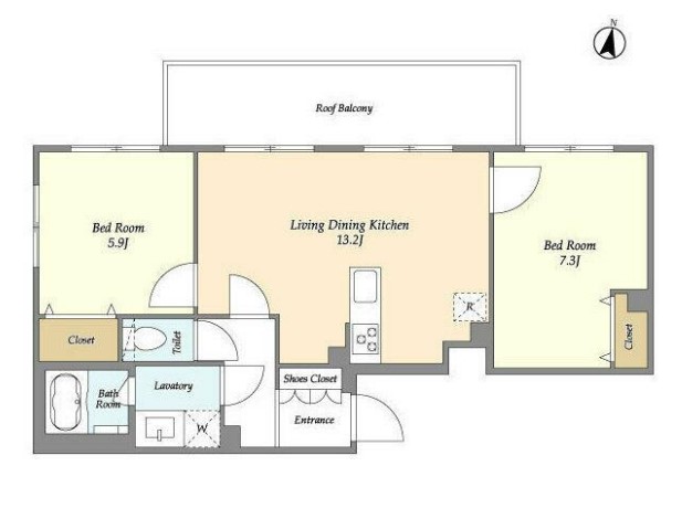 | 間取り詳細 | LDK:13.2畳 洋室:7.3畳、5.9畳 |