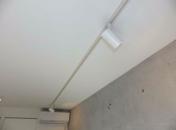 最上階、東向きの室内は一部コンクリート打ち放しの壁やスポットライト照明がお洒落に照らします。IHの2口システムキッチンや浴室乾燥機、独立洗面台、温水洗浄便座、モニター付きオートロック等の設備が充実