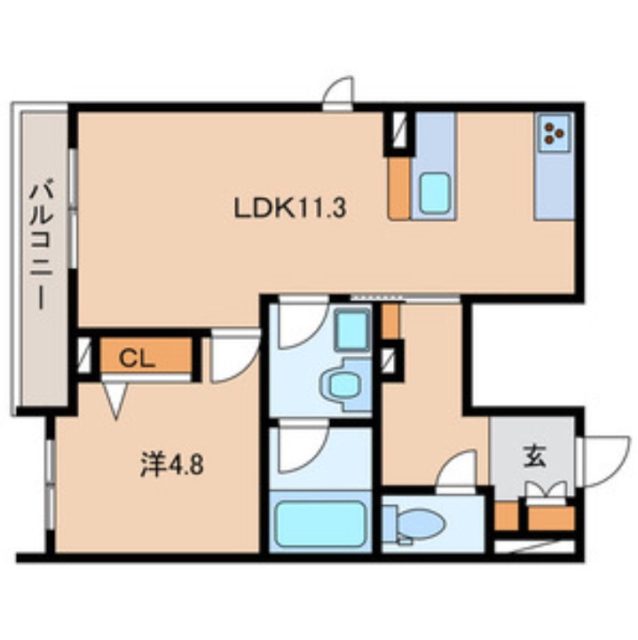 | 間取り詳細 | LDK:11.3畳 洋室:4.8畳 |