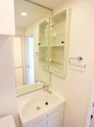 角部屋、二面採光の室内はウォークインクローゼットがあり収納豊富。2口ガスコンロのシステムキッチンや浴室乾燥機、独立洗面台、温水洗浄便座等の設備に優れ、宅配ボックスやオートロック等の共用設備も充実