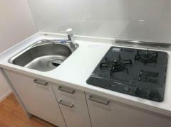 南東向き、最上階の室内は2口ガスのシステムキッチンやシャンプードレッサー、浴室乾燥機、温水洗浄便座、エアコン等の設備に優れ、バイク置場や無料で利用可能な駐輪場、宅配ボックス、ゴミ置場等の共用設備も充実