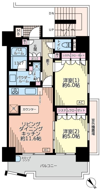| 間取り詳細 | LDK:11.6畳 洋室:6畳、5畳 |