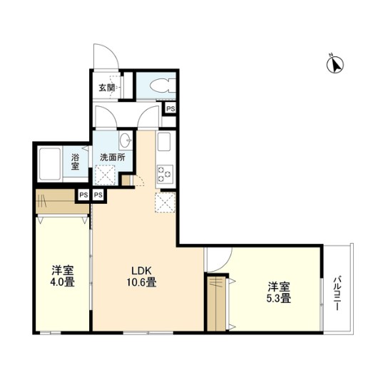 | 間取り詳細 | LDK:10.6畳 洋室:5.3畳、4畳 |