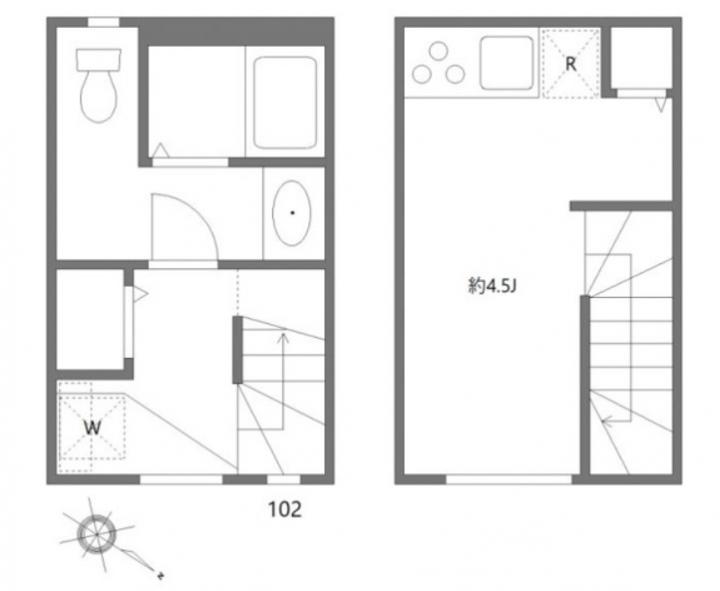メゾネットタイプのワンルームはインターネット利用料が無料。2口ガスコンロのシステムキッチンや浴室乾燥機、独立洗面台、温水洗浄便座、エアコン等の設備に優れたデザイナーズ賃貸。駐輪場が無料で利用可能です。