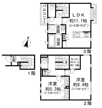 | 主要採光面 | 北東側 |