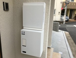 1フロア2世帯、最上階、二面採光の角部屋は2口カウンターキッチンや追い炊き、浴室乾燥機付きのお風呂、シャンプードレッサー、温水洗浄暖房便座等の室内設備や宅配ボックス、敷地内ゴミ置場等の共用設備も充実