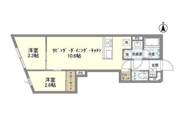 | 間取り詳細 | LDK:10.6畳 洋室:3.3畳、2.6畳 |